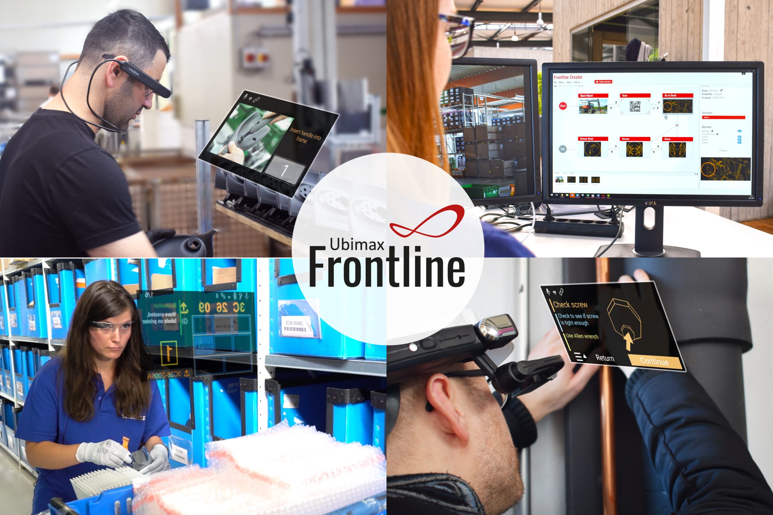 Ubimax Frontline ist die weltweit erste, vollständig integrierte Wearable Computing Plattform für den Einsatz entlang der gesamten industriellen Wertschöpfungskette. Sie bietet eine industrieübergreifende Lösungs-Suite für den mobilen Arbeiter auf Basis von Wearable Computing und Augmented Reality Technologien. Als Teil der Plattform sind die Ubimax Frontline Lösungen mehr als nur ein Zusammenschluss einzelner marktführender Lösungen.